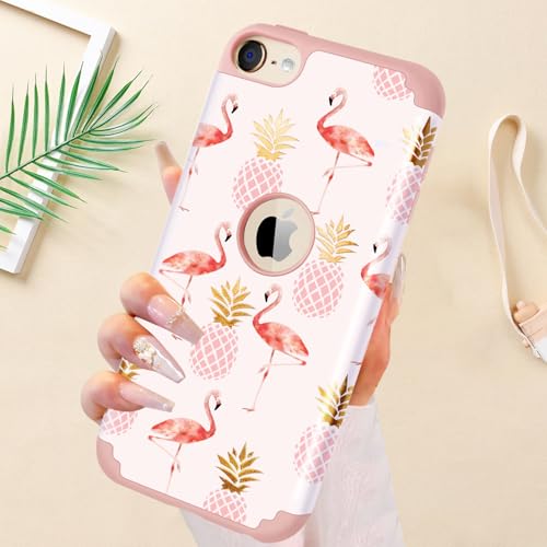 iPod Touch 7/6/5用のパイナップル・フラミンゴデザインケース。シャイニーなグリッターで可愛く、ハイブリッド素材の傷防止・耐衝撃保護カバー。