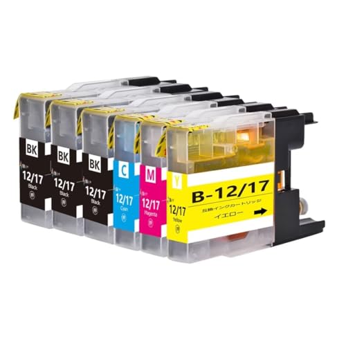 ブラザー互換インクカートリッジLC12・LC17、6本セット(4色+2本黒)。大容量タイプ、残量表示可能icチップ付。高品質でコストパフォーマンスに優れています。