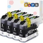 【インクのチップス】 LC211 LC211BK ブラック 4本セット ブラザー(brother)用 互換インクカートリッジ 残量表示対応 対応機種 : インクジェット複合機 PRIVIO用 DCP-J968N DCP-J963N など 認証 : ISO14001 ISO9001 RoHS指令 REACH規則 CEマーク LC211 BK lc211ブラック インク lc211 黒 高価買取中