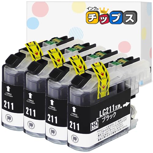 【インクのチップス】 LC211 LC211BK ブラック 4本セット ブラザー(brother)用 互換インクカートリッジ 残量表示対応 対応機種 : インクジェット複合機 PRIVIO用 DCP-J968N DCP-J963N など 認証 : ISO14001 ISO9001 RoHS指令 REACH規則 CEマーク LC211 BK lc211ブラック インク lc211 黒の高価買取