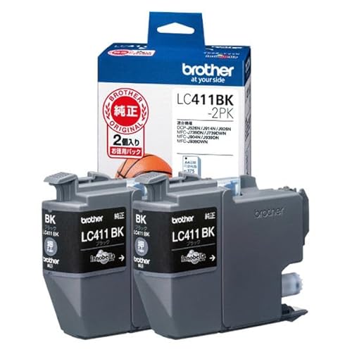ブラザー純正インク LC411BK-2PKは、黒インク2個セットです。高品質な印刷を実現し、文書や写真の色再現が優れています。互換性のあるプリンターに対応し、安心してご使用いただけます。