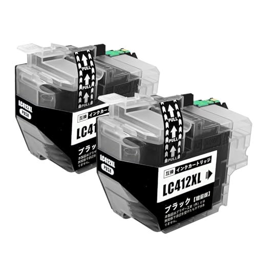 ブラザー互換LC412XLBKインク2個セット。大容量で残量表示対応。Brother MFC-J7300CDW、MFC-J7100CDWプリンタ対応。高品質な印刷を実現します。