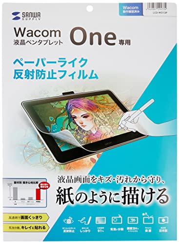 サンワサプライ Wacom One用の反射防止フィルムです。紙のような質感で、描画時の手触りが向上。気泡が入りにくい設計で、簡単に貼り付けられます。画面をしっかり保護し、視認性も向上します。