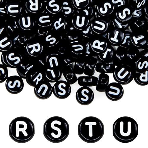 360個のホワイトアルファベットレタービーズ(R S T U)。4X7mmサイズ、ラウンド形状。プラスチック製でDIYの友情ブレスレットやネックレス、キーチェーン作りに最適。