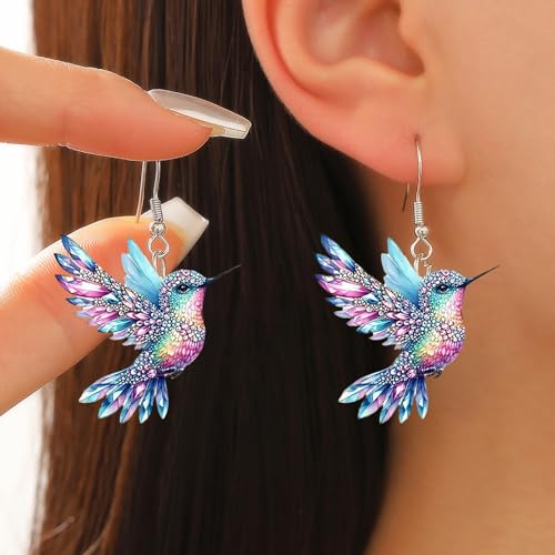 カラフルなハチドリアクリルイヤリング。ボヘミアンスタイルで女性の普段着に最適。クリスマスやバレンタインデーのギフトにもぴったり。
