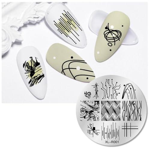 ネイルアートスタンプ用の円形プレートで、直径5.6cm(2.2インチ)です。多様なデザインが施されており、簡単にネイルアートを楽しむための印刷ツールです。