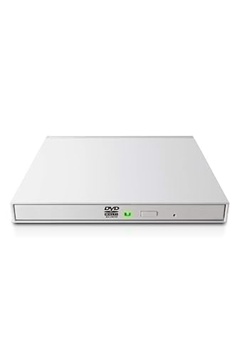 薄型DVDドライブはUSB2.0接続で、オールインワンソフトウェアが付属。Type-Cケーブルも同梱されており、ホワイトカラーでスタイリッシュ。持ち運びに便利なデザインです。