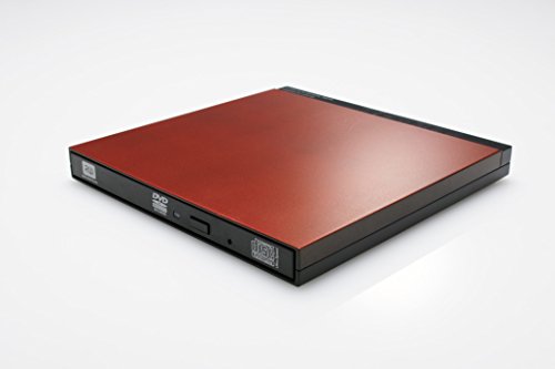 ロジテックの外付けDVDドライブ、USB3.0対応の9.5mm薄型モデル。書き込みソフト付属のレッドカラー。コンパクトで持ち運びに便利。