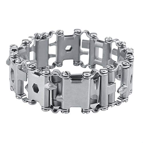 この多機能ツールブレスレットは、サバイバルやアウトドアに最適なポータブルマルチツール。ステンレススチール製で、キャンプやハイキングに便利です。