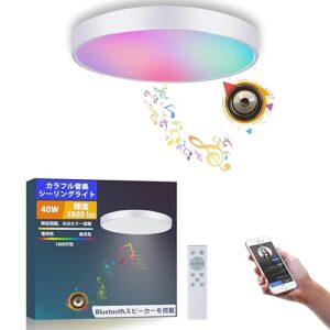 TAIGURAZ BT-YB LED シーリングライト 北欧風 6畳 内蔵のBluetooth スピーカー 音楽 天井照明 3800lm RGB 調光調色 リモコン付き 明るさメモリー 常夜灯 おしゃれ 薄型 照明器具 部屋 キッチン 洗面所 寝室に適用