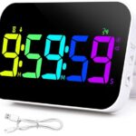 KMMKGG LEDキッチン用タイマーは、カウントアップ/ダウン機能付きで最大9時間59分59秒。音量調節可能、振動機能、USB-C充電。マグネット付きで壁掛けやスタンド使用可。サイズは2x11x7cm。
