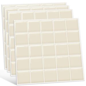 XINZY タイルシール 3D 壁紙シール 防水 防汚 耐熱 立体 レンガ調 剥がせる DIY リメイクシート キッチン 洗面所 壁面 トイレ 家具装飾用 ウォールステッカー モザイクタイル柄 賃貸 模様替え 簡単取付 (淡い杏色, 25 x 25cm 4枚)
