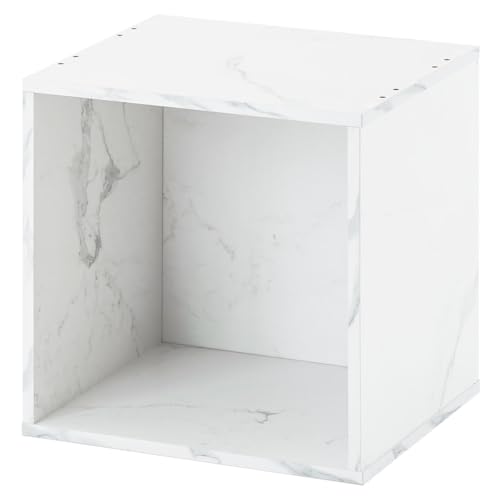 ぼん家具の木製キューブボックスは、オープンタイプの収納シェルフとして便利です。マーブルホワイトの色合いがインテリアに柔らかさを加え、書籍や小物をおしゃれに整理できます。