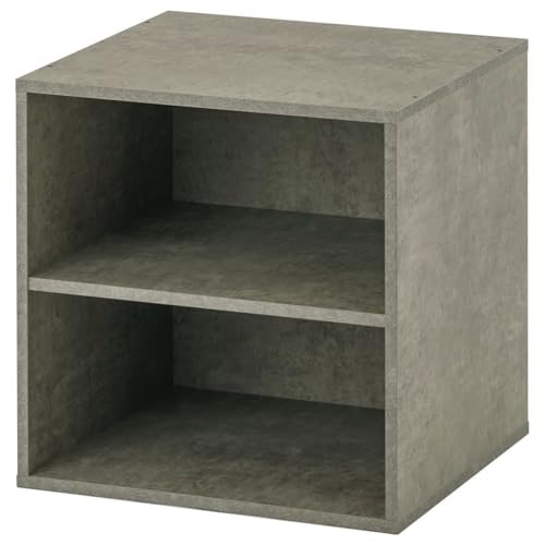 ぼん家具の棚付きキューブボックスは、40×40cmの木製収納アイテムで、モルタルグレーのデザインが特徴です。本棚やカラーボックスとして使えるスタイリッシュな収納ソリューションです。