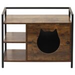 猫用トイレが隠せるキャットクローゼット。おしゃれな木目調デザインで、トイレを隠しつつ収納できます。ペットトイレの目隠しにも最適なキャビネットです。