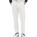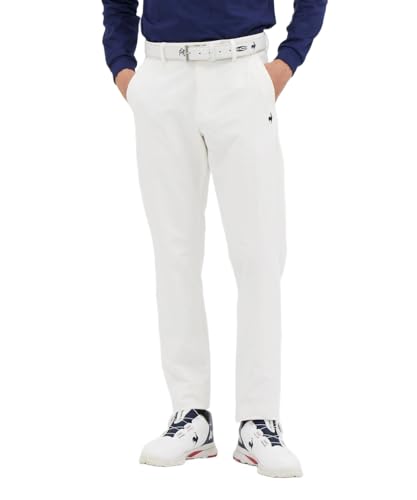 ルコックスポルティフのゴルフパンツはテーパードシルエットで、裏起毛素材を使用。撥水性と保温性に優れ、ストレッチが効いて動きやすい。カラーはホワイト。