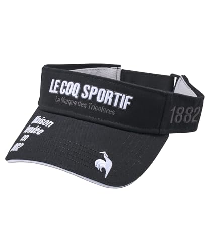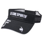 ルコックスポルティフの定番サンバイザー、正面にロゴ入り。素材は綿で、ゴルフに最適なデザイン。カラーはブラック(BK00)、スタイリッシュな印象を与えるアイテムです。