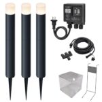 タカショーのガーデンライト間のひかりLGL-LH04Pは、雨よけ付きコントローラーを備えた基本セットです。ライト3本、スタンド、コントローラーが含まれ、庭を美しく演出します。