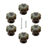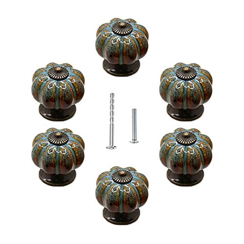 UULUの陶器製つまみは6個入りで、可愛いかぼちゃデザインのノブです。キッチンやキャビネットに最適で、ビンテージ青い色合い。2種類のネジが付属しており、DIYにぴったり。