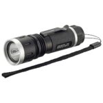 オーム電機のLEDトーチライトLHA-SOS431-Kは、300lmの明るさを持ち、SOSモールス信号点滅機能を搭載。防災やアウトドアに最適な黒色デザイン。