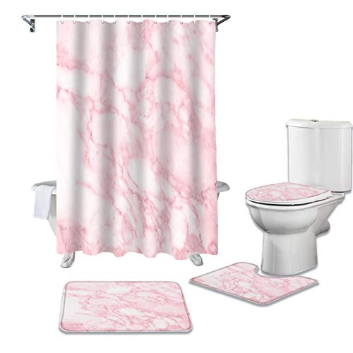 LHGBGBLNのピンクの大理石プリントシャワーカーテンは、防水仕様でバスルームの装飾に最適です。トイレカバーやクッションカバーもセットで、統一感ある空間を演出します。
