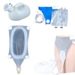 男性用着用型小便器は、尿はね防止カバー付きの携帯用デザイン。シリコンとPP素材で作られており、150cmのホースが付属。車椅子や寝たきりの方にも最適。