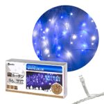 タカショーのガーデンライト、イルミネーションカーテン96球(ホワイト&ブルー)は全長約6.9mで屋外使用可。防水仕様で温かみのある光を放ち、塩化ビニル樹脂製。