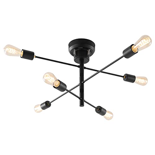 ぼん家具のシーリングライトは、おしゃれな6灯シャンデリアです。回転可能で、E26口金のLED電球専用。カフェやダイニングに最適なブラックデザインの天井照明です。