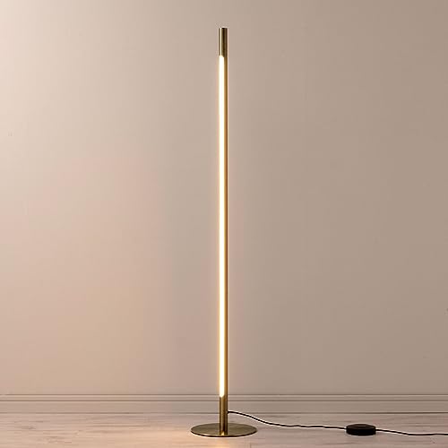 ぼん家具のリモコン付きLEDフロアライトは、調光・調色機能を備えたスタンドライトです。間接照明としても使えるスタイリッシュなデザインで、フットスイッチ操作が可能。ゴールドの仕上げが魅力的。