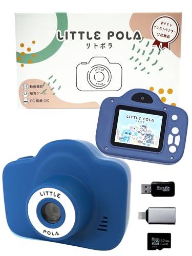リトポラ公式キッズカメラ。8倍光学ズーム、32GBメモリー。写真、動画、音楽機能あり。スマホ転送対応、変換アダプター付き。男女問わず楽しめるデザイン(ゲームロック・ネイビー)。