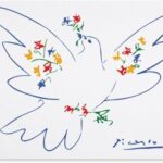パブロ・ピカソの「Dove of Peace」のポスター。抽象的なウォールアートで、モダンなキャンバス絵画。サイズは50x70cm、額縁なしでお届け。ホームウォールデコレーションに最適です。