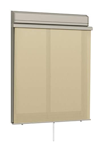 スタイルシェード 外付けスクリーン 1枚仕様 15020 W:1,670mm × H:2,110mm、枠付きシャッターサッシA。生地色:シックベージュ(E)、ボックス色:オータムブラウン(G)。LIXILリクシル TOSTEMトステム。受注生産品。