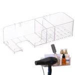 省スペースな壁用ヘアドライヤーオーガナイザー。スタイリングツールをすっきり収納できるラック。ハンガーや櫛、はさみも整理整頓可能。