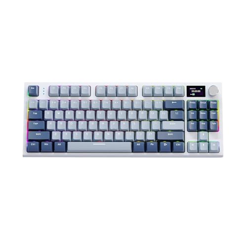 このRGBメカニカルキーボードは、ガスケットマウント設計とホットスワップ機能を備え、2.4Gワイヤレス及びBluetooth 5.0接続が可能です。LCDディスプレイ付きで、家庭やオフィスに最適です。