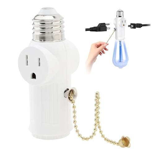 2プロングライトソケットアダプターはE26電球に対応し、プルチェーン付きで便利。パティオやガレージに最適なプラグスプリッターコンバーターで、複数の電球を同時に使用可能です。