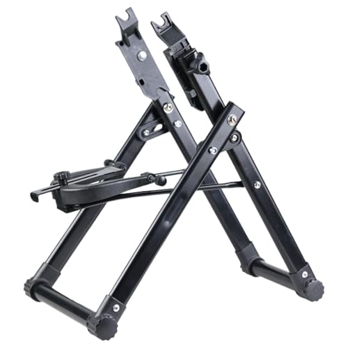 Heavy-duty bike wheel truing stand for alignment and balancing. Made of aluminum alloy, it’s a multipurpose maintenance tool ideal for home or business use.