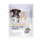 ドッグ用ドライクリーニング手袋とリンス不要のグルーミングウェットティッシュは、滋養成分配合で水不要。日常のお手入れや衛生的清掃に最適。子犬や子猫の抜け毛除去にも便利です。