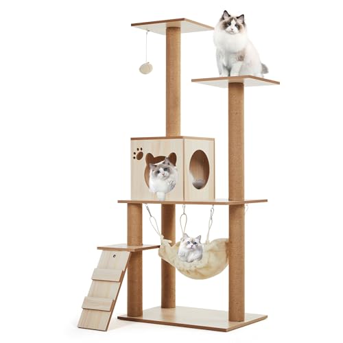 キャットタワー 木製 132cm ハンモック付の製品情報