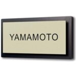 横8.5×縦4.5cmのコンパクトなアクリル製表札です。黒台付きでシンプルなおしゃれデザイン。両面テープまたはマグネットで簡単に取り付け可能。戸建てやマンションの玄関、門柱に最適。屋外使用にも対応した新築向け看板です。