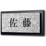 横8.5×縦4.5cmの黒台付きのアクリル製表札です。コンパクトでミニサイズ、簡単に取付可能。両面テープまたはマグネットで装着でき、戸建てやマンションに最適。玄関や門柱におしゃれでシンプルな看板としてご使用いただけます。