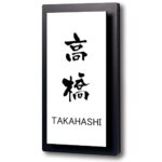 縦型のアクリル表札(70×134mm)は、黒台付きでシンプルなおしゃれデザイン。戸建やマンションに最適で、コンパクトなサイズ。貼るだけのテープ付きで、簡単設置可能。玄関やポストにぴったり。