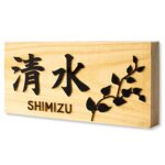 ひのき製の浮き彫り表札です。5寸・6寸のサイズから選べ、横15cm・18cmの大きさがあります。玄関やマンション、戸建に最適で、おしゃれでシンプルなデザイン。和風の猫やふくろうのデザインもあり、新築やポストにもぴったり。貼るだけで簡単に設置可能です。