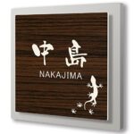 14cm角のライトグレー台付の表札です。コンパクトでおしゃれなアクリルプレートは、戸建てやマンションの玄関に最適。簡単に貼るだけで、シンプルなデザインが印象を引き立てます。刻印もでき、屋外使用OKの新築にもおすすめ。