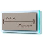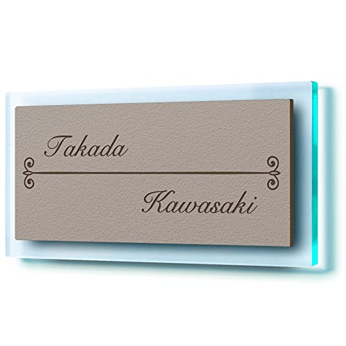 134×70mmの2世帯向け表札です。ガラス風のアクリル台付きで、横長デザイン。簡単に貼れるテープ付き、戸建やマンションに最適。玄関や門柱、宅配ボックス、ポストにも合うコンパクトでおしゃれなプレート。