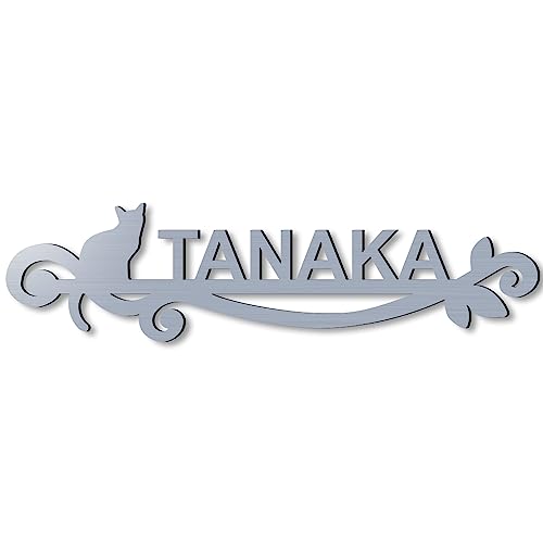 横幅18cmのアクリル製切り文字表札。アイアン風デザインで、大文字のアルファベットや数字、ローマ字に対応。アンダーライン付き、マンションや戸建のポスト、門柱、玄関、ドアに最適。貼るだけの両面テープシールで、屋外でも使用可能な立体文字です。