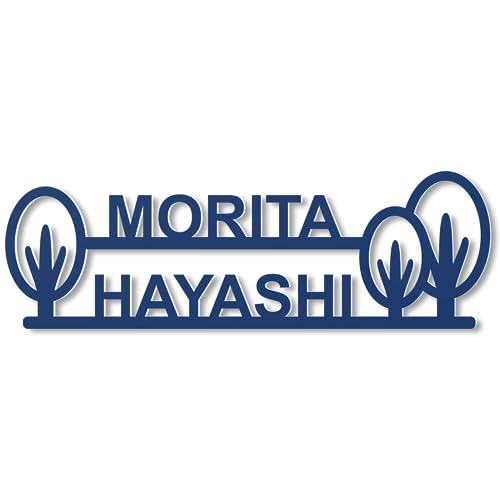 横幅10cmの二世帯向けアクリル切り文字表札。アイアン風デザインで、アルファベット大文字や数字、ローマ字を使用。コンパクトでマンションや戸建の玄関ドアに最適。両面テープで簡単に貼り付け可能、屋外対応の立体文字。