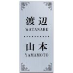 縦7.5cmの表札で、二世帯向けのシンプルなアクリル製ミニプレートです。マンションや戸建てに適し、屋外でも使用可能。貼るだけで簡単に設置できます。軽量で薄く、ステンレス調や木目デザインも選べます。