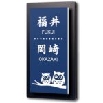 縦8.5cmのシンプルな黒台付表札。二世帯用で、名前と住所、部屋番が貼れるミニアクリル製。軽量・薄型で屋外使用に最適。ステンレス調や木目デザインもあり、縦書き対応で玄関やポストにぴったり。