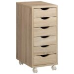 ぼん家具のサイドチェストは、キャスター付きでスリムなデザイン。サイズは幅28.6×奥行36.6×高さ65cmで、A4サイズが収納可能な6段引き出し。オーク材の仕上げで、インテリアにもフィットします。