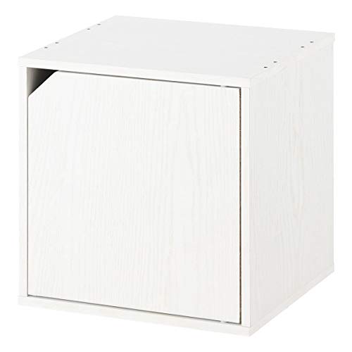 ぼん家具の木製キューブボックスは、完成品で扉付きの収納シェルフです。ホワイトカラーが美しい本棚としても利用可能。シンプルなデザインで、様々なインテリアにマッチします。